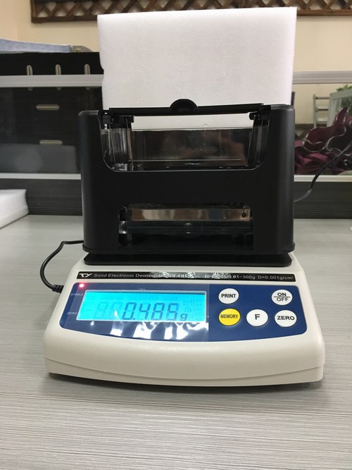 2. 將產(chǎn)品放入水中測水中重量,按ENTER鍵記憶,顯示密度值